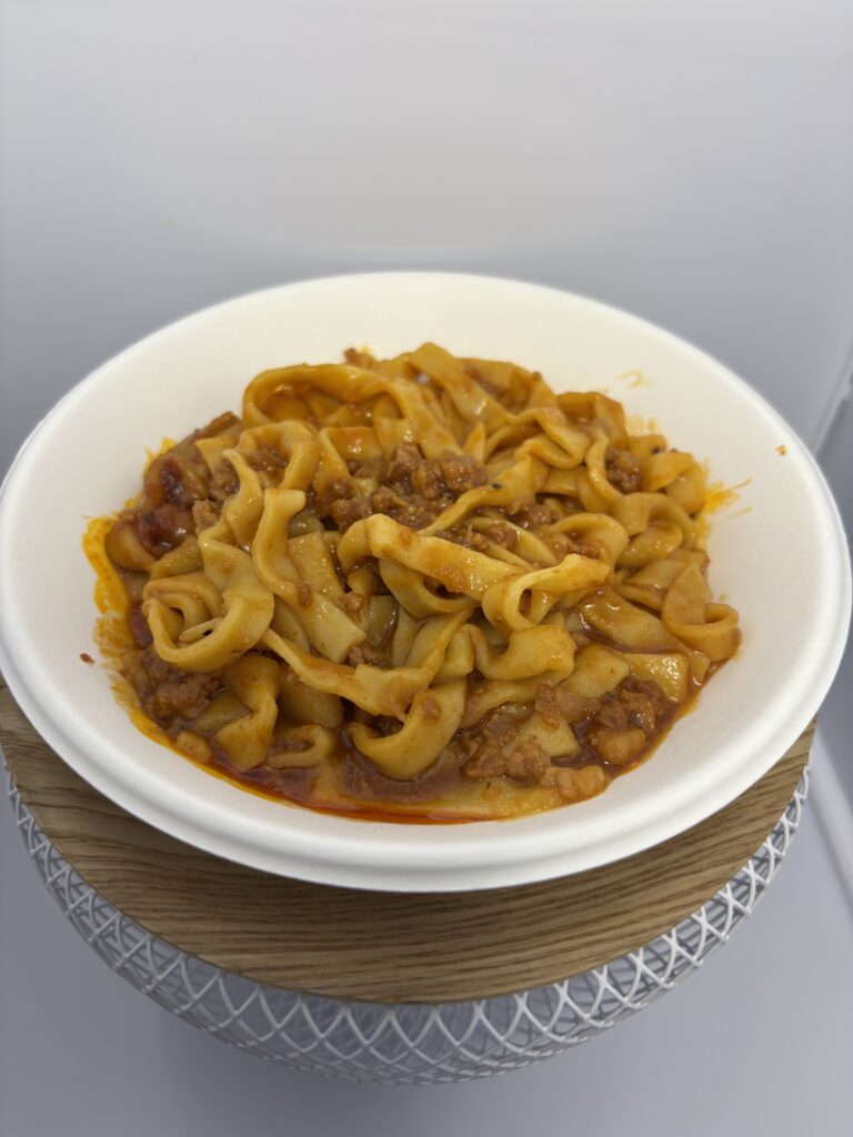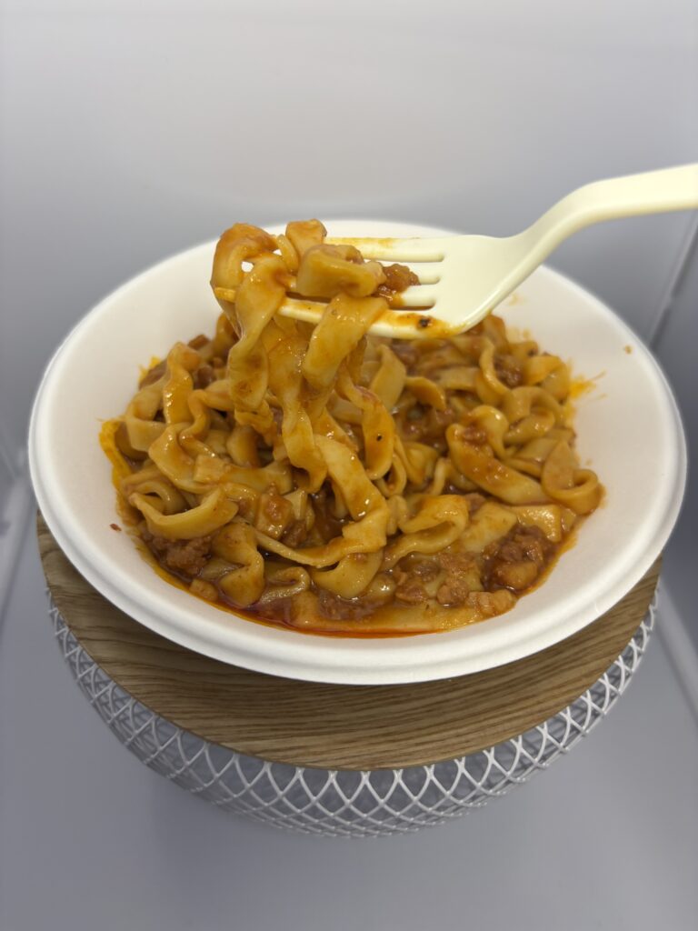 お味は…味の濃いソースが太麺によく合うおいしいボロネーゼです!