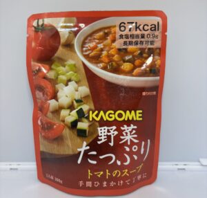 KAGOME 野菜たっぷりきのこのスープ は日東アリマン株式会社が製造、カゴメ株式会社が販売する長期保存スープです。
