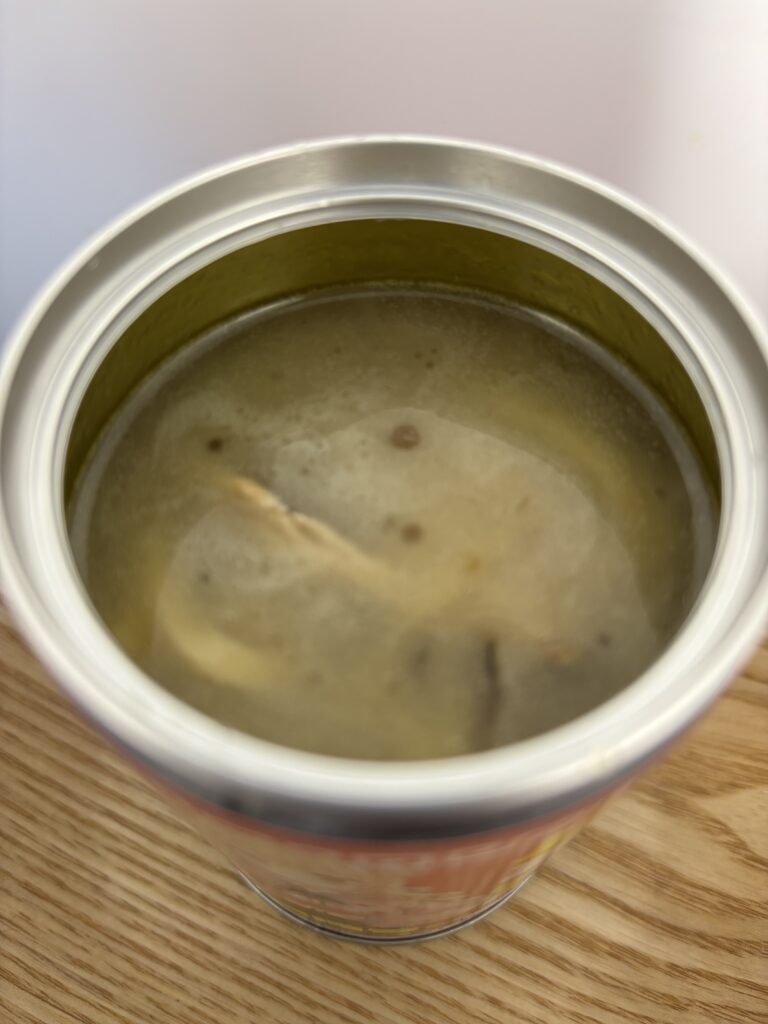 調理方法は湯煎がおすすめ、ということで沸騰したお湯の中に缶ごと入れて火を止めた後15分ほど温めていただきます。開封するとほんのり醤油の良い香りがします。