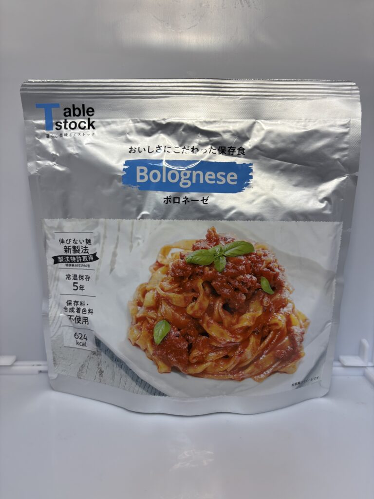 非常食の備忘録です。今回は Table stock おいしさにこだわった保存食 ボロネーゼ をご紹介します。