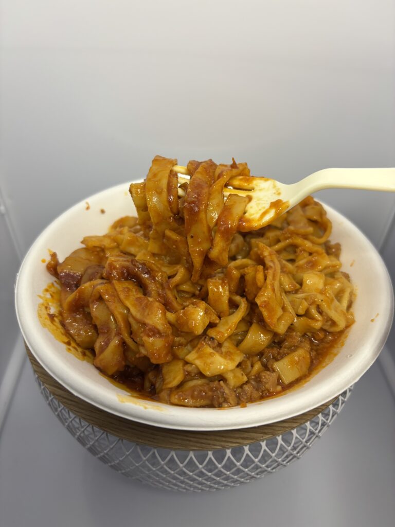 お味は…もっちりむっちりした太麺に味の濃いソースががっつり絡んでおいしいボロネーゼです!