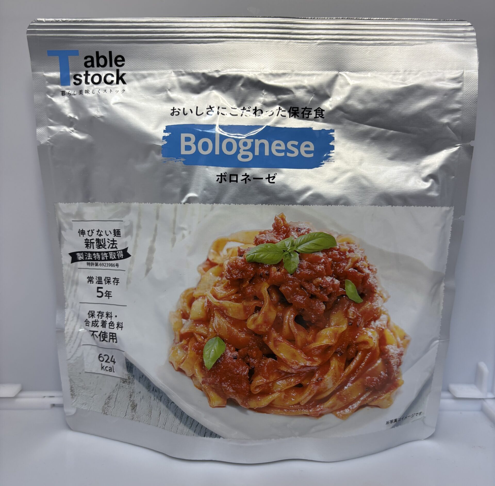 非常食の備忘録です。今回は Table stock おいしさにこだわった保存食 ボロネーゼ をご紹介します。